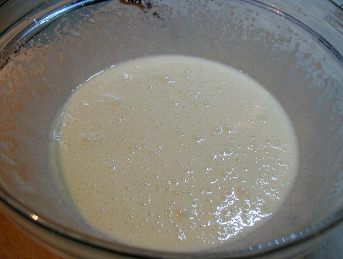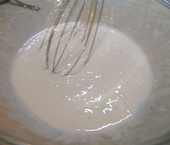Яйцо взбить с сахаром до белого состояния.