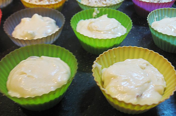 Формочки заполнить тестом на 2/3.