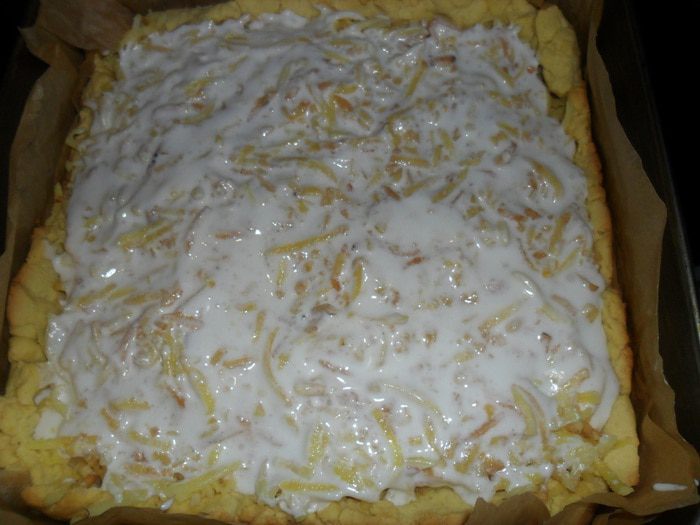 Форму смажьте маслом или как сделала я (выстлала пекарской бумагой и на всякий случай смазала).