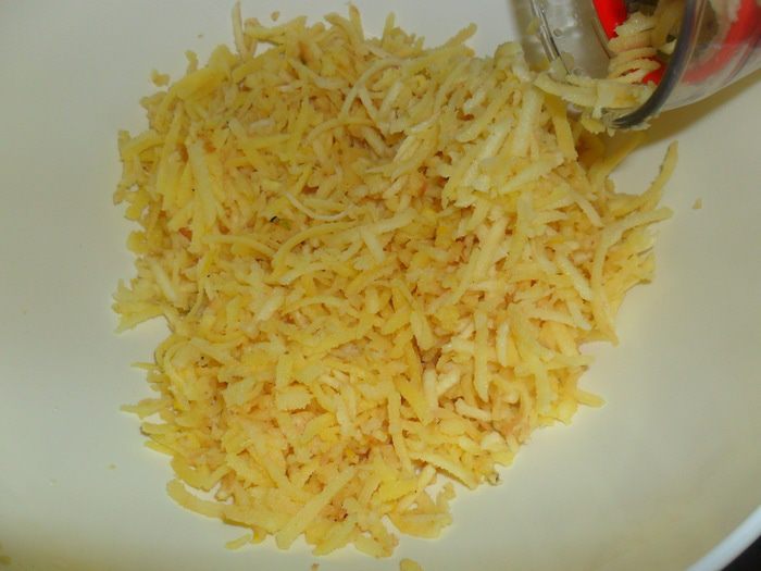Тем временем айву вымойте, очистите и натрите на крупной терке.