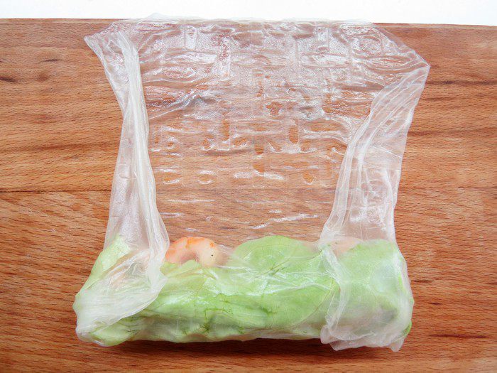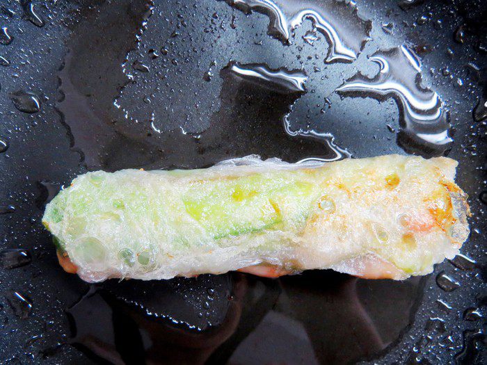 Важно, чтобы рисовая бумага не была порвана, и ролл был герметично скручен, иначе раскаленное масло попадет внутрь, и пар взорвет спринг-ролл изнутри.