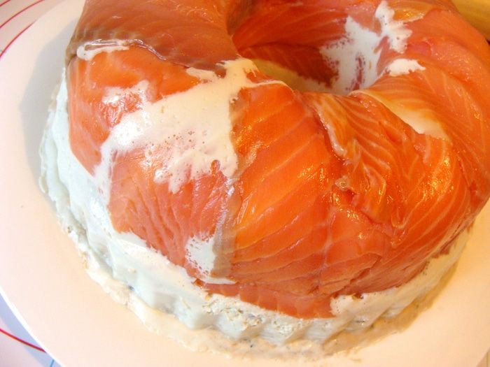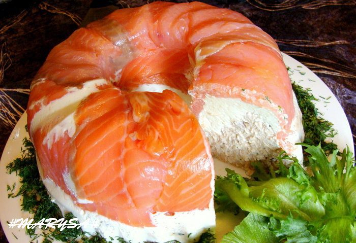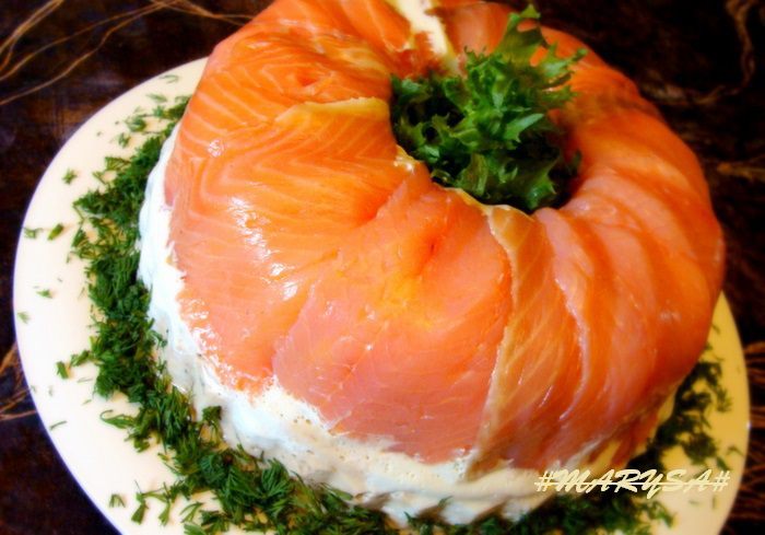 Лосось, форель или кету отварить со специями (лавровый лист, перец горошком, соль, головка лука), можно по своему вкусу.