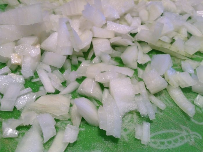 Лук измельчить.