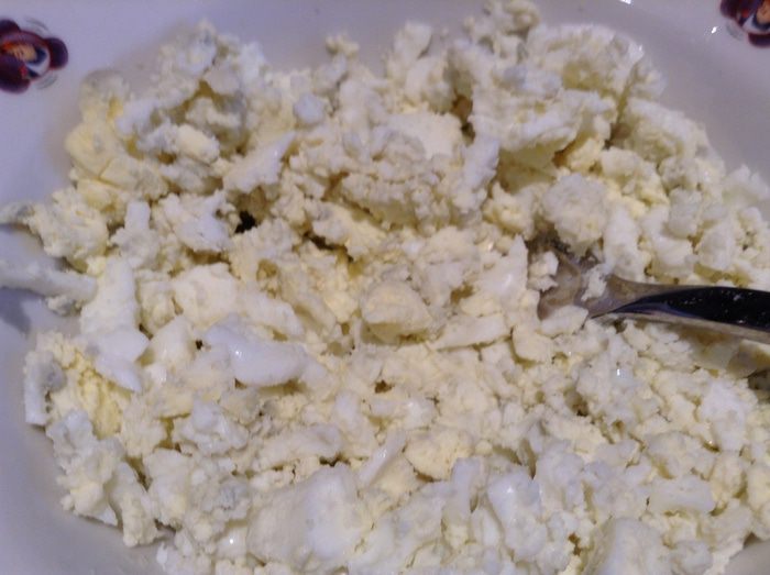 Яйца отварить и измельчить.