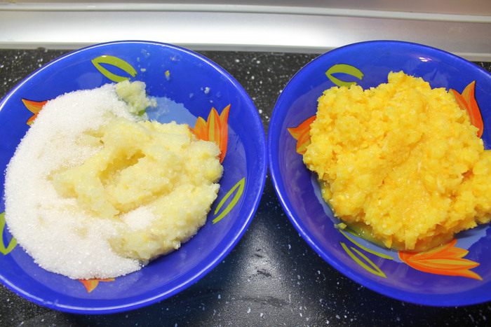 То же самое делаем с лимоном, но к нему ещё добавляем сахар и перемешиваем.