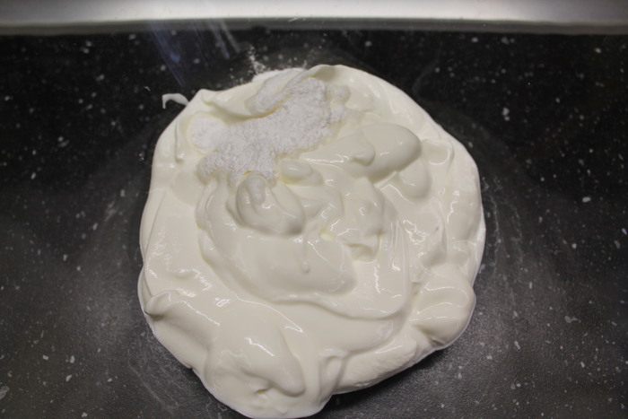 Сметану смешиваем с разрыхлителем.