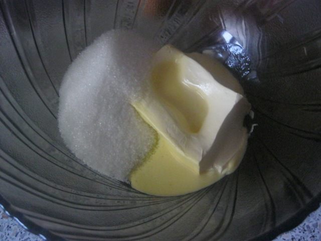 Сливочное масло ( размягченное) взбить венчиком с сахаром.
