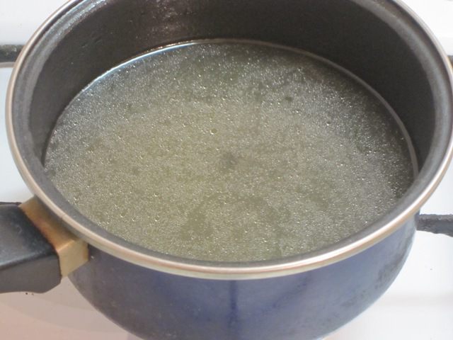 В бульон влить распущенный желатин и пропущенный через пресс чеснок. При необходимости посолить и добавить свежемолотый черный перец.