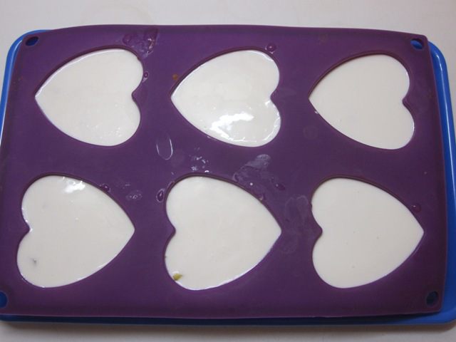 В формочки налить немного сметаны с желатином. Убрать в холодильник до застывания.