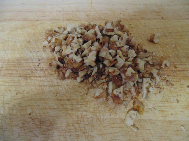 Грецкие орехи обжарить на сухой сковороде, порубить.