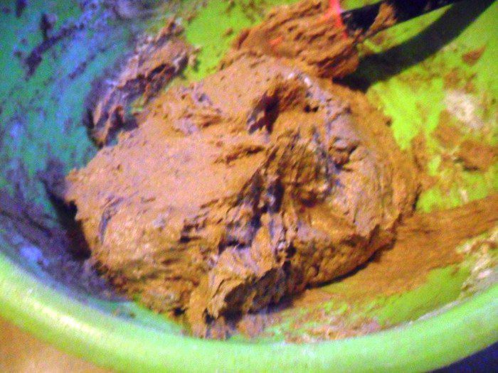 Постепенно небольшими порциями ввести просеянную муку с содой. Добавить какао и корицу. Перемешать.