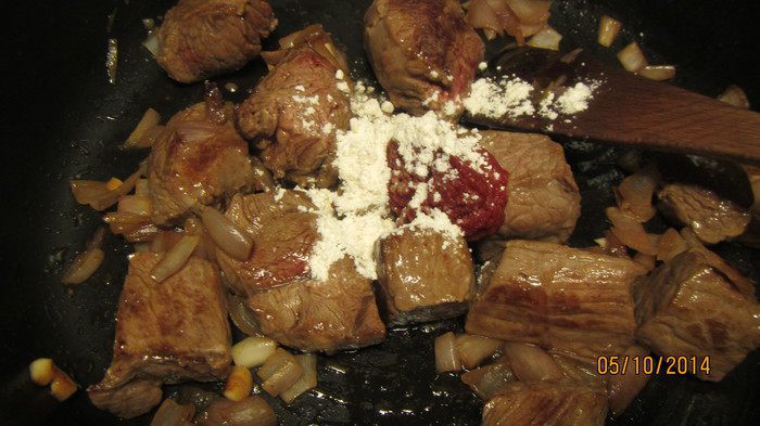 1. Я приведу пропорции, как они были в оригинале. У меня было 450 г говядины и я большинство ингредиентов уменьшила, кроме лука и чеснока. Мне кажется, что пропорции мяса и овощей можно регулировать по своему вкусу.