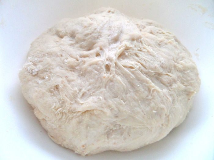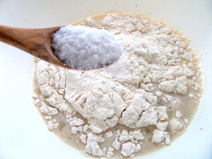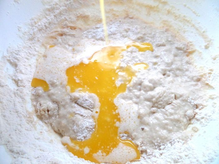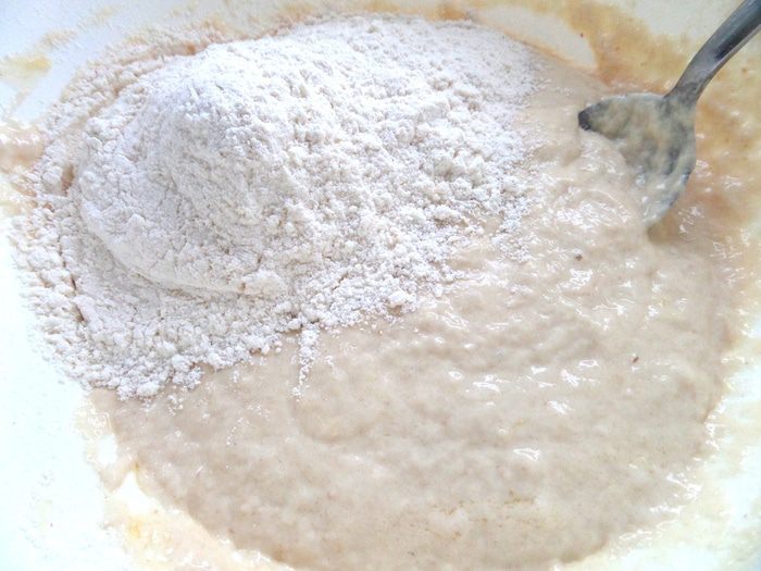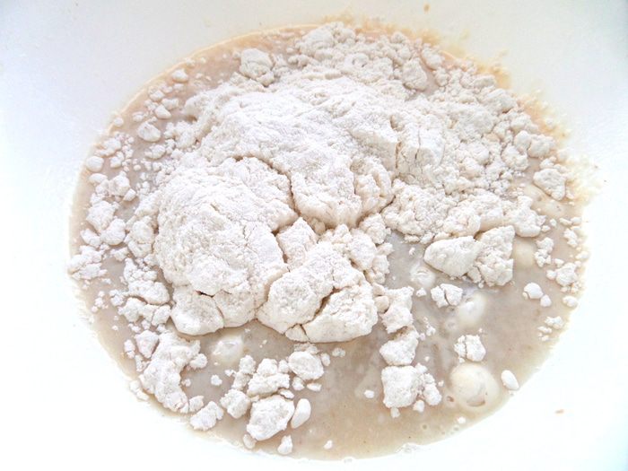 Всыпаем остальную муку,замешиваем тесто.