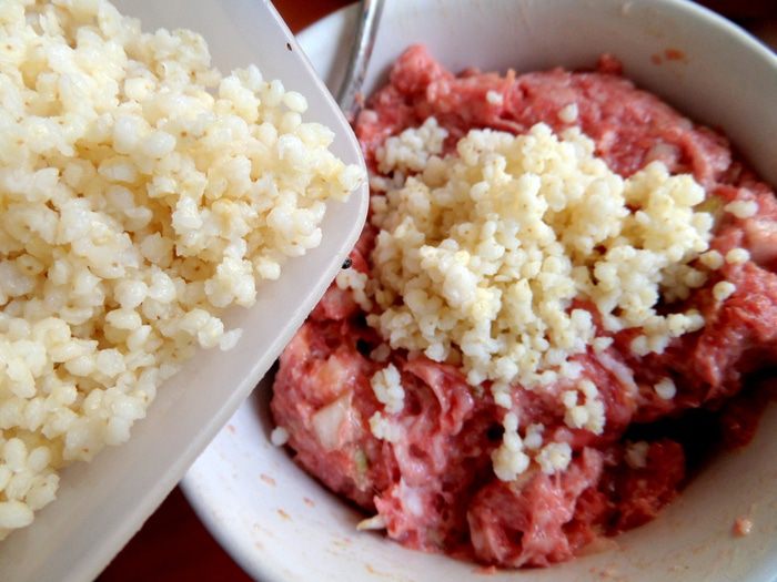 Пшено отварить заранее,промыв в нескольких водах,добавить к фаршу.