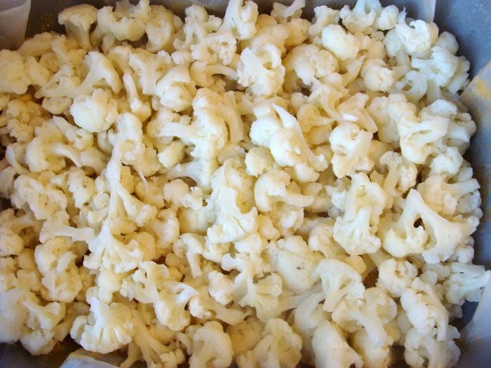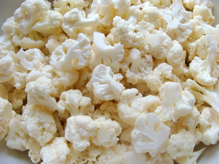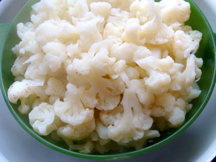Капусту разделить на маленькие соцветия. В итоге осталось наверное примерно 1 кг 100г чистого веса.
