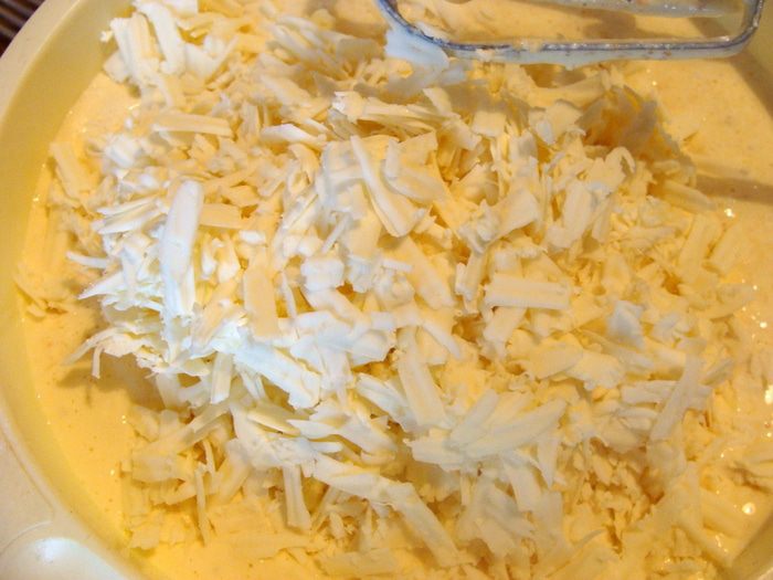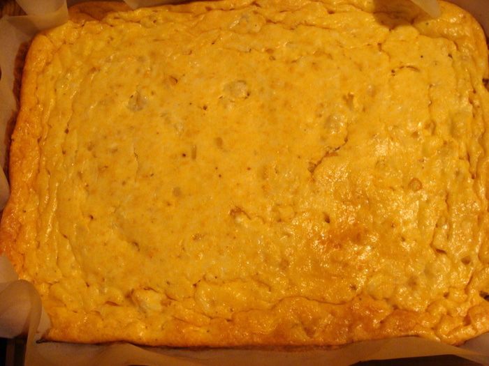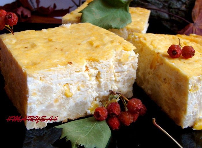 Залить творожно-сметанной смесью.