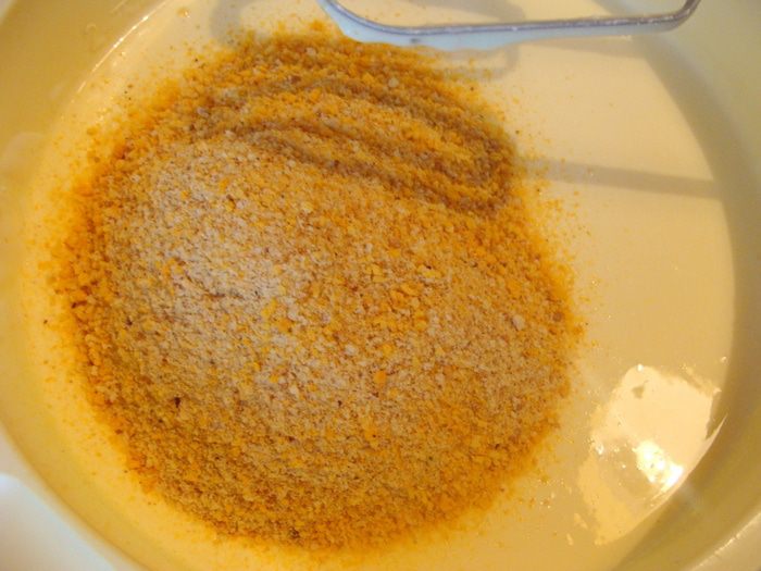 Добавить панировочные сухари и разрыхлитель (2 ч/л с верхом), перемешать.