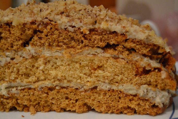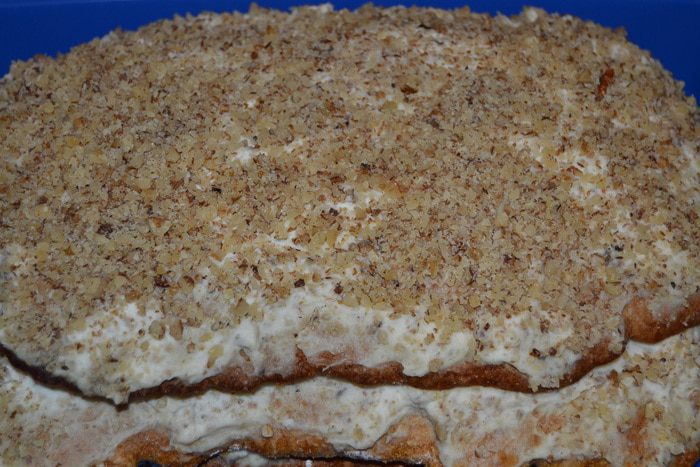 В самом конце добавляем молотые орехи. Крем готов.