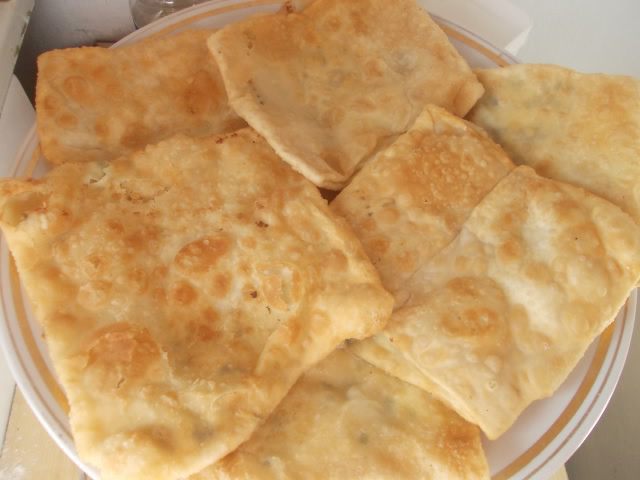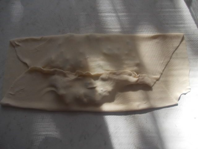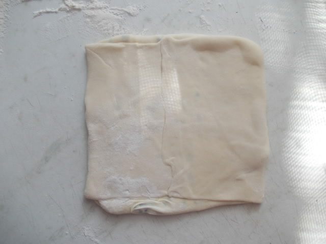 Затем соединить другие два края и также защипнуть. Скалкой тонко раскатать. Но,не в коем случае,нельзя порвать тесто,чтобы начинка не оголилось,поэтому перед тем как раскатать,максимально тонко плакопс,нужно сначала прижать его руками,разровнять,а потом раскатывать. Также приготовить все 6 штук.