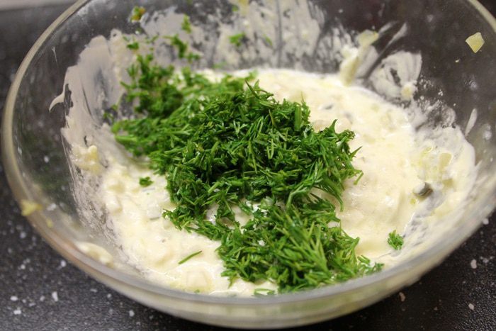 В конце, чтобы придать нашему соусу свежий аромат, добавляем измельченный укроп.