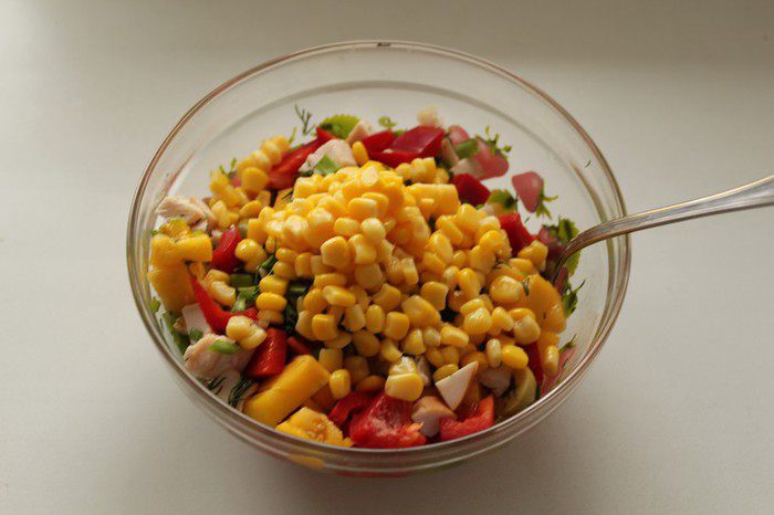 Салат до безобразия прост, но в нашей семье он прижился, к тому же еще есть собственноручно выращенные овощи и мы с удовольствием похрустели! Овощи желательно брать разноцветные, красный,желтый ,зеленый! Салат получается яркий и сочный!