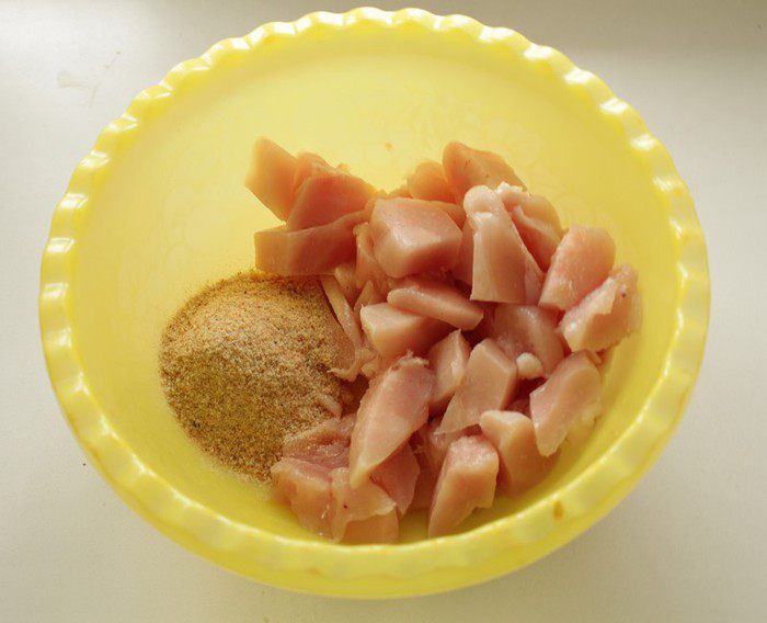 Добавьте сливки и перемешайте их с сухарями, разбейте туда же яйцо.