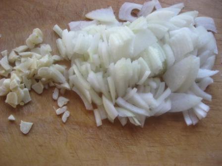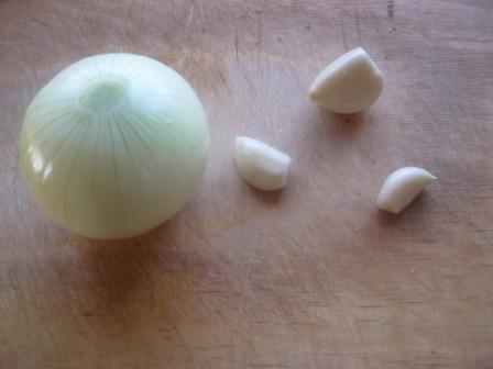 Лук и чеснок очистить,