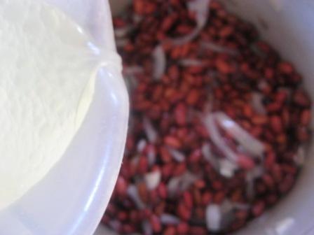 Отмерить 350 гр сухой красной фасоли. Вымыть и залить водой, оставить на ночь.