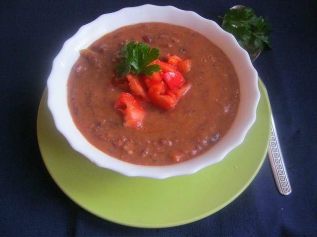 P.S. Можно использовать готовую баночную фасоль, тогда ее нужно добавить в бульон вместе с томатами и перцем, и проварить вместе 15-20 минут)