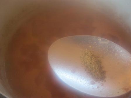 Добавить молотый кориандр, перемешать. Еще проварить минут 15-20. Убрать с огня и чуть остудить.