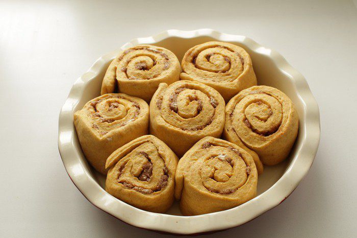 Накрыть промасленной пленкой и дать булочкам увеличиться в размере в 2 раза (около 45 минут).