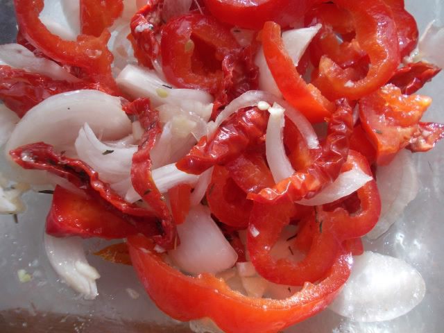 Вот такие у меня помидорки с тимьяном, к рыбке идеально подходят, если нет таких, то можно отдельно добавить щепотку тимьяна.