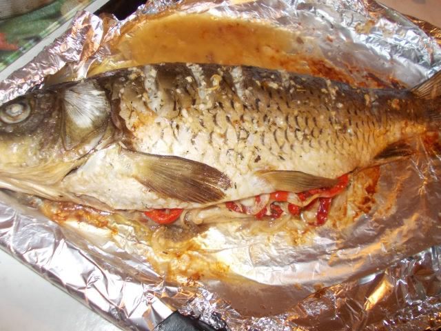 Карп,одна из самых любимых сортов рыбы в нашей семье. Он сочный, вкусный и костей там немного, вкуснота, а не рыба!!! Предлагаю вам приготовить карпа с луком, вялеными помидорками и сладким перцем, а также начиненным сливочным маслом с чесноком и ароматом лимона с тимьяном. Прекрасно подойдет для ужина, очень полезно и лекго!!! Мужчинам для сытности можно добавить пюрешку на гарнир. Приятного аппетита!!!