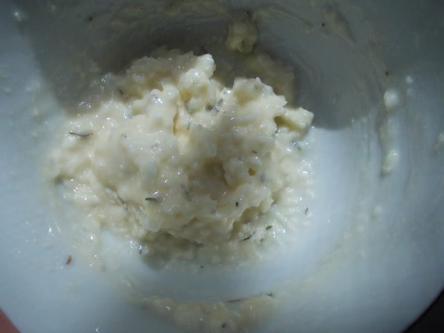 Чеснок измельчить и смешать с мягким сливочным маслом, добавить немного масла с вяленых помидорок вместе с тимьяном.