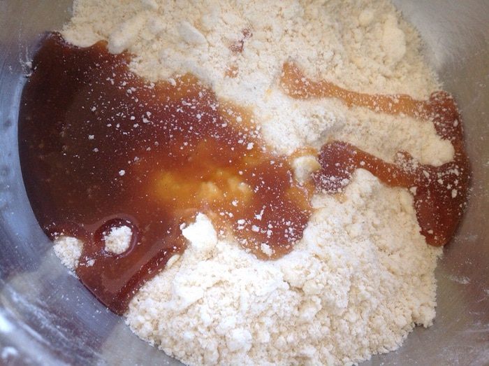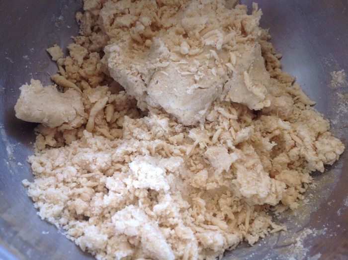 Тесто получается немного влажным, рассыпчатым, но хорошо собирается в комочки.