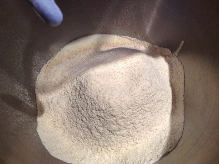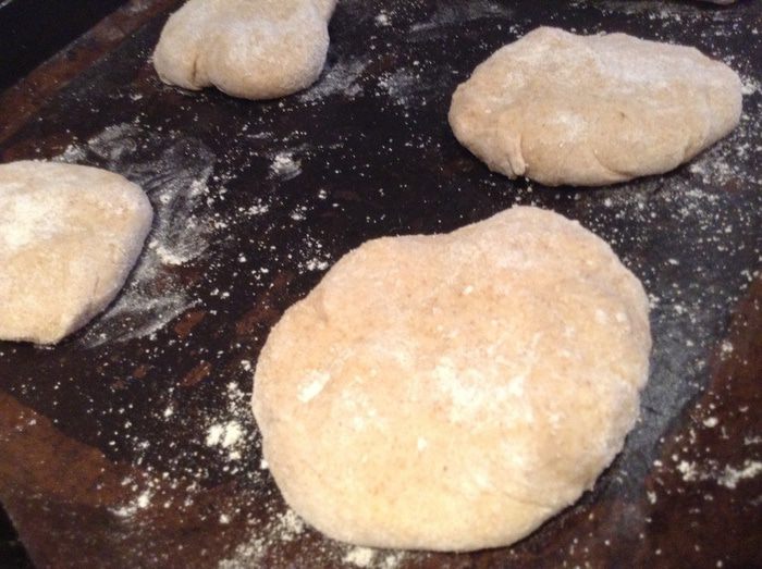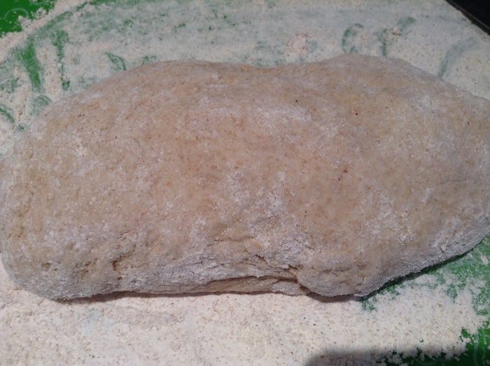 Замесить чуть липкое тесто, накрыть и оставить на 1ч. 30 мин. (мое тесто не хотело подходить и мне пришлось чуть-чуть схитрить: в таких случаях емкость с тестом отправлю в микроволновку с приоткрытой дверцей...., лампочка дает тепло и полное отсутствие сквозняков..., может это и не очень правильно ..., но 100% работает).