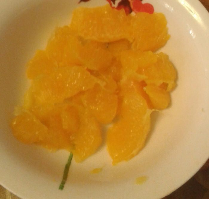 С апельсина снять кожуру. Острым ножиком вырезать дольки между пленками, вытекающий при этом сок сохранить. Филе апельсина порезать на средние кусочки.