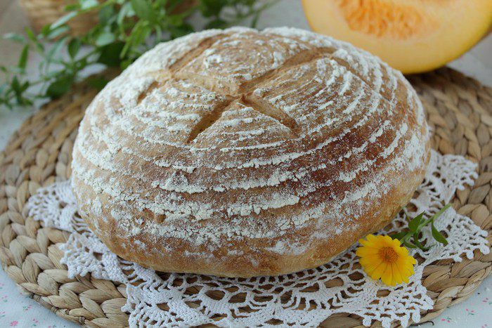 Разогреть духовку до 200-230 С. Поставить на низ духовки чашку с водой. Сделать на хлебе разрезы и выпекать первые 5- 7 минут при температуре 230 С, затем уменьшить температуру до 200-210 С и выпекать еще в течение 25 - 30 минут.