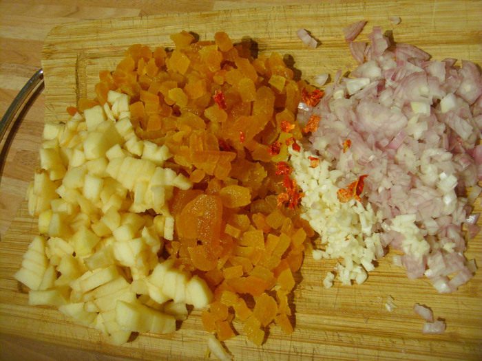 Яблоко, курагу, чили.
