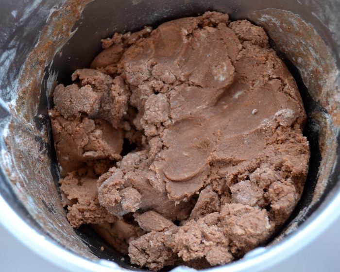 Включить миксер и замесить тесто. Выложить на стол, сформировать шар, завернуть в пленку и убрать в холодильник примерно на 2 часа.