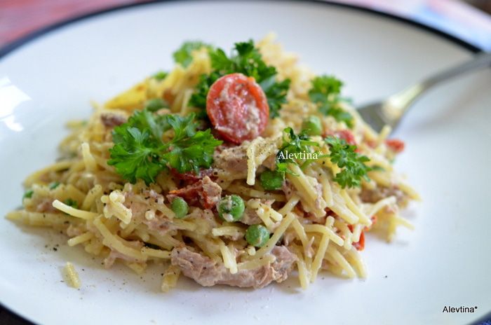 Легкий и приятный обед или ужин. Тунца используем баночный или готовый в пакетных мини упаковках.
