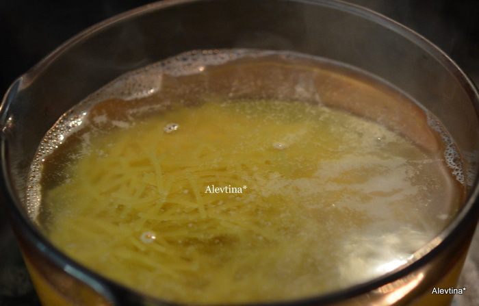 Отварить пасту , как сказано на упаковке в соленой воде.