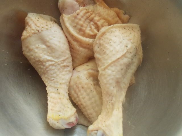 Курицу или куриные ножки,посолить и поперчить. Лучше брать домашнюю курицу,вкус получается более богатым.
