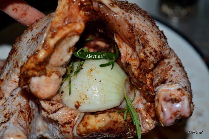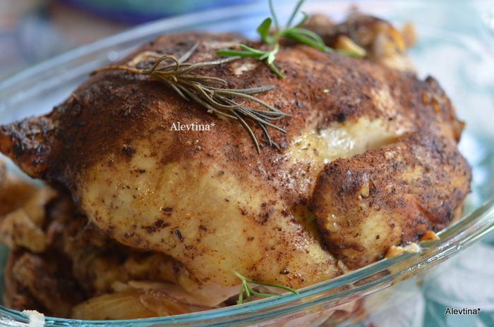 Положить курицу в медленноварку, остальную часть луковицы крупно порезать дольками и положить вместе с курицей. Положить розмарин. Закрыть крышкой и поставить режим медленный 5 часов. В духовке закрыть фольгой или крышкой и тушить не открывая крышку, можно добавить воды немного в начале.