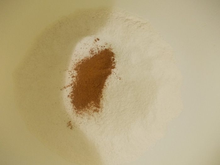 Разогреваем духовку до 180 градусов. Просеиваем муку, добавляем соль, корицу, разрыхлитель и все слегка перемешиваем.
