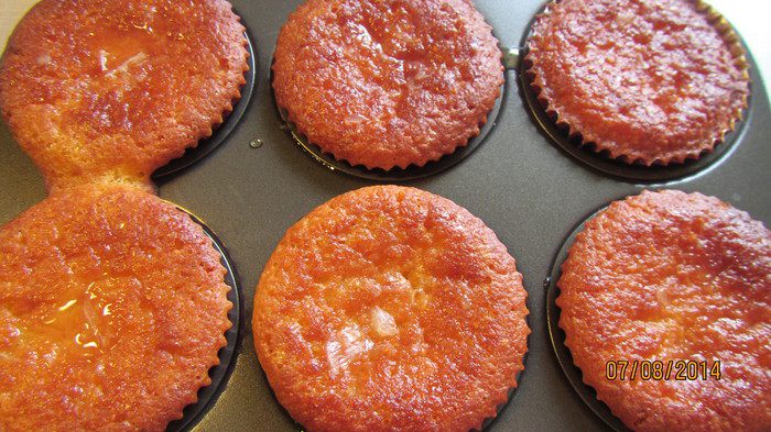 Выпекаем минут 20-25 до золотистого цвета. При прикосновении кексики должны пружинить.