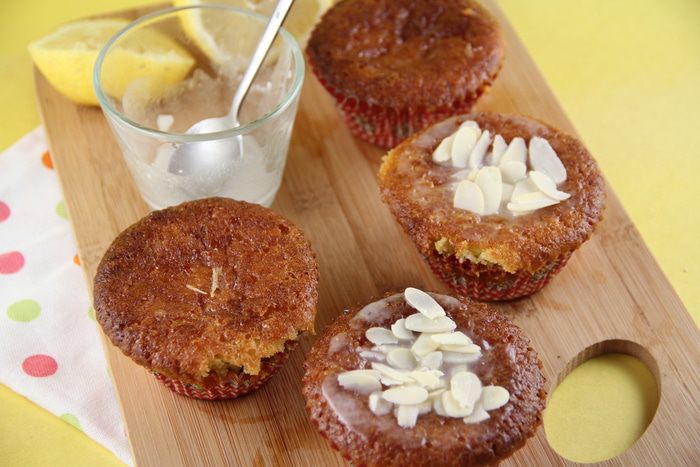 Хотела бы Вас сегодня угостить вот такими кексиками) они потрясающе вкусные и ароматные, лимон с миндалем так хорошо сочетаются, и амарето здесь придает совершенно особые нотки. Кексики получаются влажные, сочные. Нам они оцень понравились)) Если вам хочется, чтобы они были посуше, то уменьшите количество пропитки. Из приведенного количества ингредиентов получается около 6 штучек,но можно и двойную порцию делать. Буду рада, если и Вы попробуете))