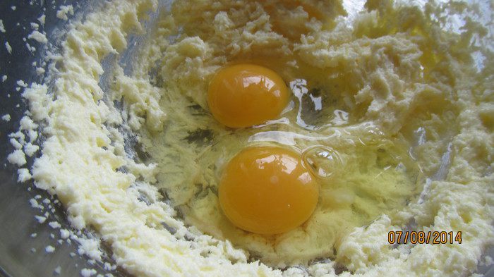 Добавляем яйца и взбиваем еще раз.