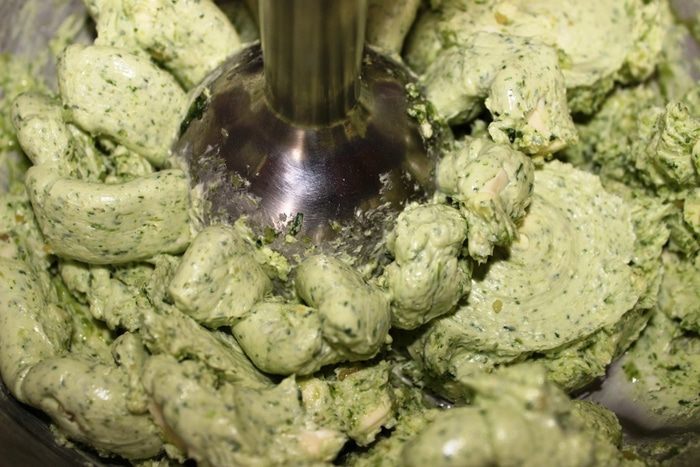Добавить к мягкому маслу измельченные вкусовые наполнители и взбить погружным блендером.