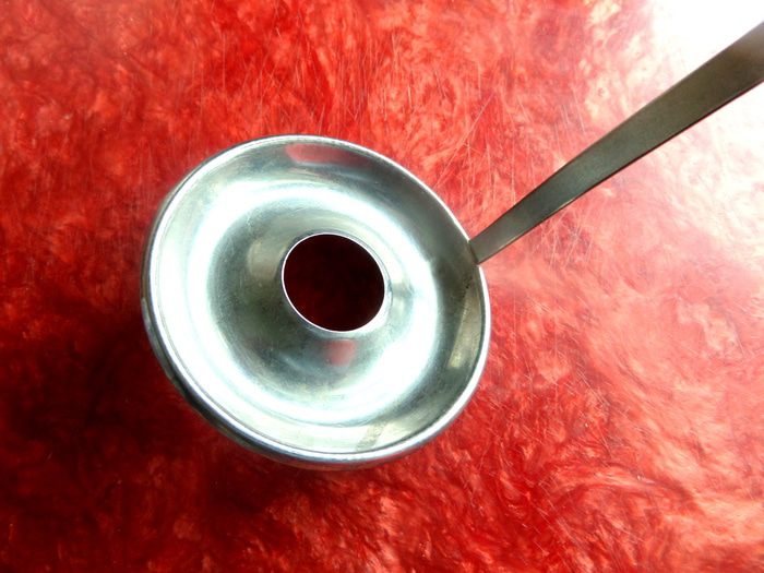 А вот и "королева бала"! Ставим на огонь кастрюлю с маслом и окунаем в неё ложку,держим в горячем масле пару минут.